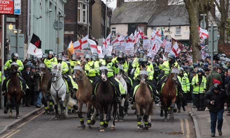 But to dismiss the group as modern blackshirts is a mistake. In fact, the EDL is more accurately described as a Facebook group with a militant wing. Behind the 500 or so that hit the streets this weekend exists a much larger, highly motivated online community of thousands of sympathisers and supporters who set the mood music, recruit, proselytise and organise. Like every group founded in the Facebook era – UK Uncut being one example – social media is written into its DNA.