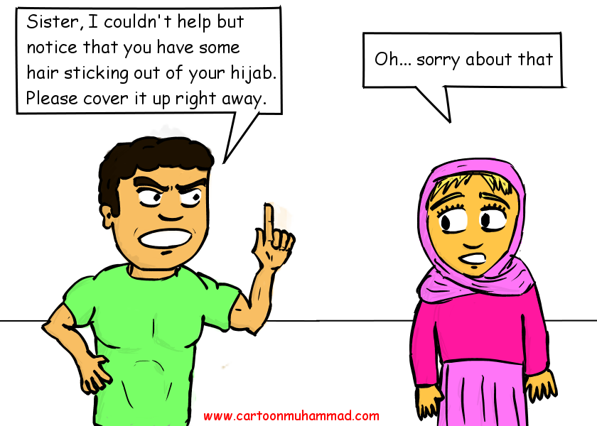 Who is deciding what constitutes the “right” hijab and a “true Muslim woman?” According to more than one of the infographics, the judgement comes from our fellow “brothers in Islam.” Not scholars. Not women. Not God. It sets a dangerous precedent when men feel they can freely comment on and define women’s bodies. These memes and infographics are shared thousands of times over social media. They’re fun, fresh, snappy cartoons — reinforcing the message that women have no agency to decide what makes a good hijab for them, whether fully covered or not at all.