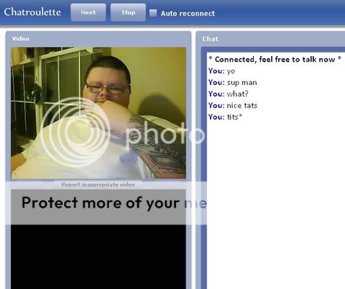 http://www.chatroulette.com/At one moment I was sitting in the living room with my wife, and on entering the site, we were siphoned into a dimly lit room with a man who told us he was in Russia. Moments later we were watching a woman dance half-naked in a kitchen in Turkey, and then we stared in shock at a gaggle of laughing college students in a dorm room somewhere. With each click of the mouse we were transported into a stranger’s life — then whisked along to another jarring encounter.