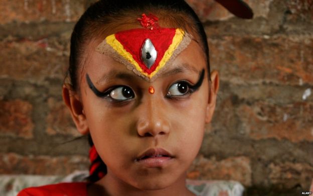 It is traditional for Hindus and Buddhists in Nepal to worship "Kumari Devi" - pre-pubescent girls who are believed to be the reincarnation of the Hindu goddess Durga.